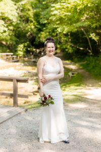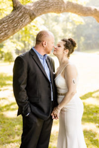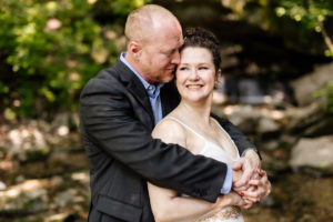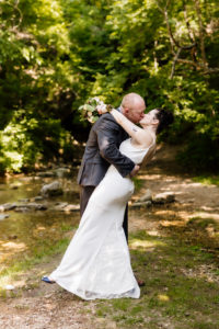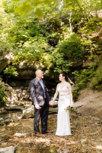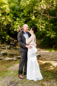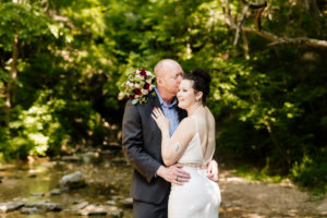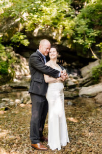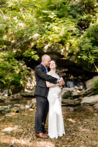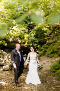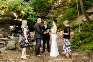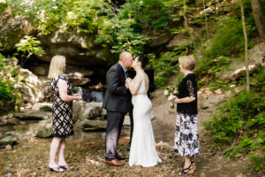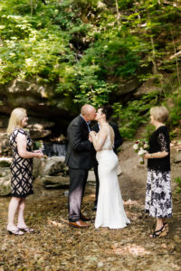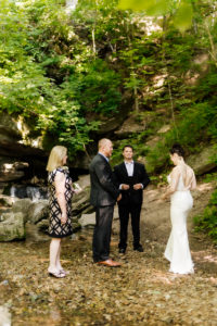 Brad and Laura chose to elope at Blowing Springs Park. Only their moms were witnesses and Brad’s friend Mark was their minister. It was an incredibly sweet and intimate time with no sense of rush and hurry that you can feel at a traditional wedding. They chose to hold their ceremony back near the natural spring (which cooled off the air by at least ten degrees!) and when Laura couldn’t see if it was time for her to make her entrance yet, a helpful passerby at the park stood in as temporary coordinator for her.
