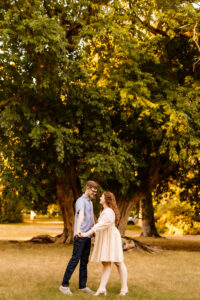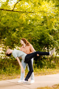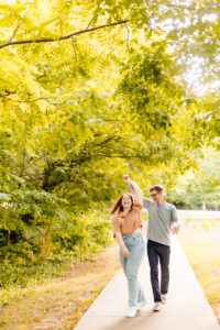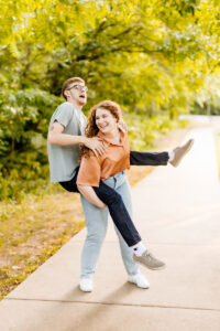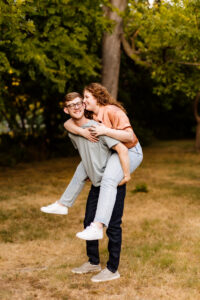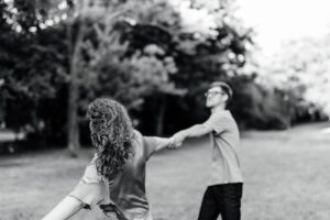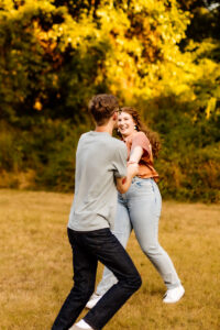 When you find that person you can be fully yourself with, it is only natural that you choose to remain close to them. Morgan and Zach were up for any ideas and prompts that I threw their way. They snuggled on a bench, danced in public, gave piggy-back rides, frolicked in an open field, and simply enjoyed each other’s company. They were fully present with each other and didn’t complain once about me asking them to be silly or affectionate in public.