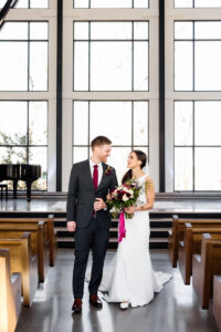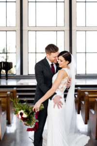 Between the stunningly deep florals from The Blush Dahlia, the expert planning and coordination from Lauren, the soft light of a morning Cathedral Chapel wedding, and the joy filled bride and groom (and their families) – this wedding is one that was as pretty on the eyes as it is filling for the heart.