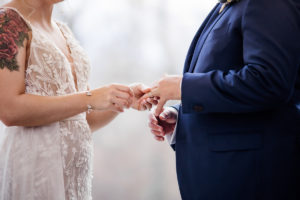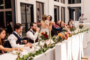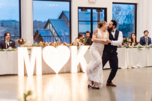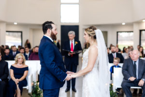 Katie and Micahel’s ceremony was just as unique as their private first dance. Instead of the traditional placement with the officiant at the front, they arranged for the officiant to stand in the aisle. By doing so, the couple could face out towards their friends and family throughout the ceremony, creating an intimate, yet inclusive atmosphere.