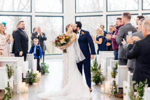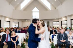 One of my favorite things about this uncommon placement was that the couple requested that my second photographer go behind them to capture the kiss. With this positioning, instead of capturing only the typical front-facing shot, we were able to capture a striking photo that yet again included their guests. This unique perspective added depth and context to the kiss, making it a moment to remember from every angle.