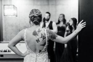 During Katie and Michael’s engagement session, Michael had shoulder-length curly locks. But, on the wedding day, he had undergone a drastic transformation having cut off all of his hair. It took me a minute to figure out who the groom was, as he was almost unrecognizable at first glance! Though unexpected, it was a delightful change that made for a fun moment for both the couple and myself to laugh about.