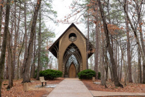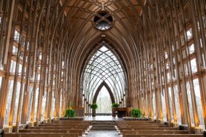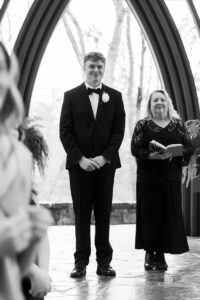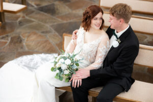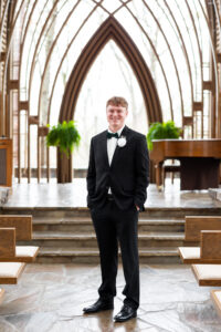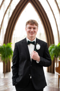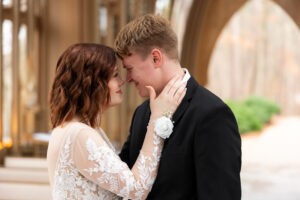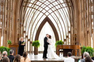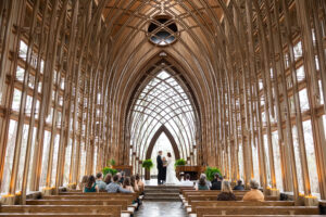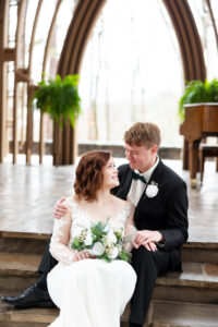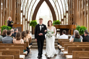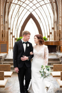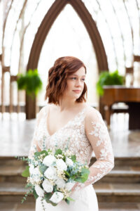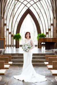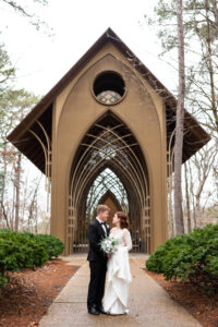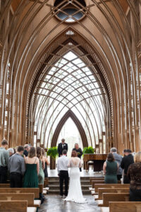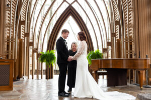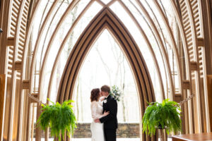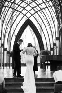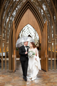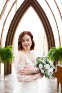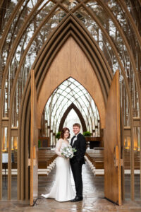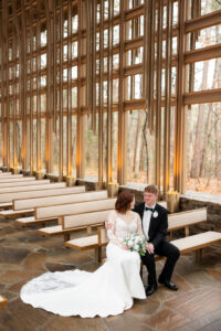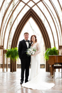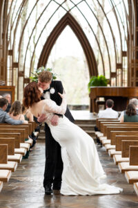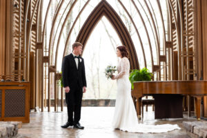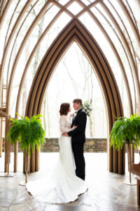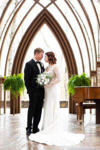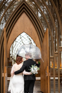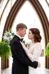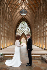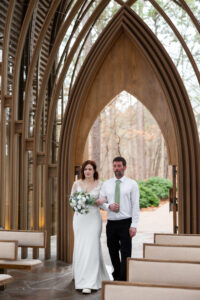 With the arching wooden beams, the floor to ceiling glass, the stone flooring – Cooper Chapel is an architect’s dream elopement venue. Elle is studying architecture out of state, but when she found The Mildred B Cooper Chapel online she knew it was the perfect venue for her and Ben to begin their forever together. She said it was the window at the front of the chapel that really drew her attention.
