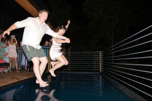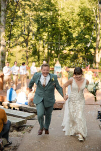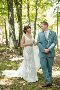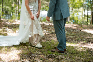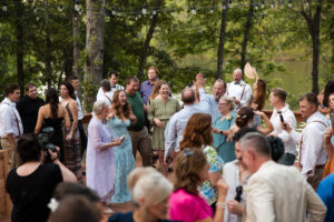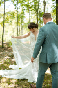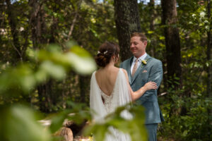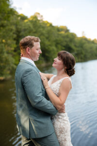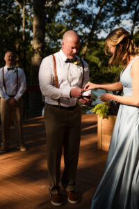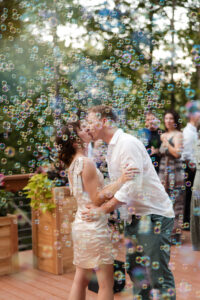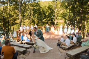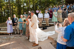 Caanon & Matt’s airbnb wedding at Heart Haven in Rogers, AR was everything an intimate, yet full celebration could ask for. The relaxed atmosphere, the peaceful nature (literally), and the overjoyed people made for a winning combination. There’s a peace and freedom that a non-traditional wedding venue gives, and an AirBnB is a perfect place to find it. Caanon & Matt were able to spend the weekend with their friends and family right next to them. Meals shared, supportive words surrounding them, reception napkins folded together, nature explored, and a leisurely pace was set for what would be an epic weekend. From the bubble machines, to the handwritten vows, to the serenity during prep, to the woodsy first look, to the portraits on the dock, to the packed ceremony, to the cozy reception, to the hopping dance floor, to the late night swim – every moment was intentionally curated in an atmosphere of joy.